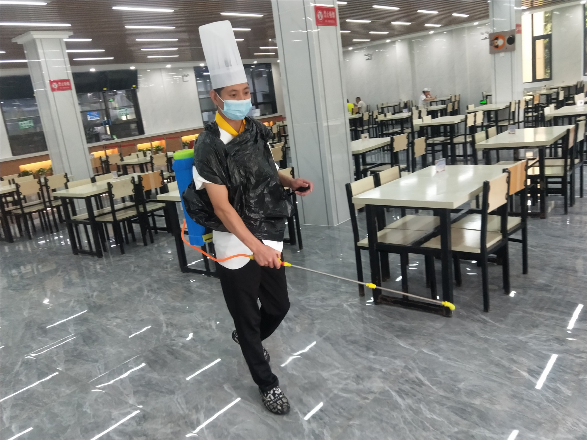 加強消毒管理,做好環(huán)境消殺。嚴格執行公司疫情防控措施,就餐時(shí)間安排專(zhuān)人值守,維持秩序,督促就餐職工遵守防疫規定。同時(shí),加強衛生保潔,對就餐桌椅和餐具嚴格消毒,并安排工作人員每天定時(shí)對餐廳及周邊環(huán)境進(jìn)行消殺。